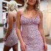 Sheath Spaghetti Straps Blue Sequins Short Homecoming Dress ON202283736